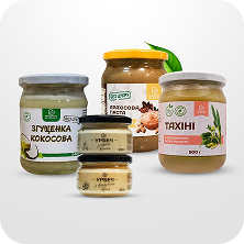 Наш асортимент включає різноманітні олії прямого та холодного віджиму, борошно, топлене масло Гхі з коровʼячого масла і Гхі з козиного масла, урбечі та пасти.